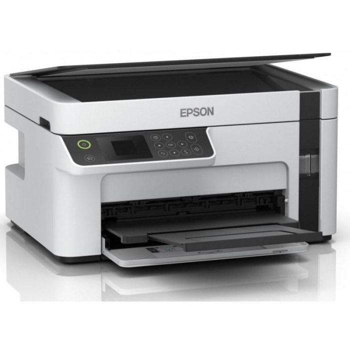 Imprimante Jet d'encre EPSON ECOTANK ET-M2120 Multifonction 3en1 Monochrome - Fonctions: Impression, Numérisation et Copie - Format Papier: A4 - Technologie d'impression: jet d'encre - Vitesse d'impression ISO: Jusqu'à 15 ppm (N&B) - Vitesse d'impression: 32 pages / min monochrome (papier ordinaire) - Résolution d'impression: 1.440 x 720 DPI (ppp) - Résolution de la numérisation: 1200 x 2400 DPI - Connectivité: USB, Wi-Fi, Wi-Fi Direct - Dimensions: 375 x 318 x 200 mm - Poids: 5 kg - Garantie: 1 an